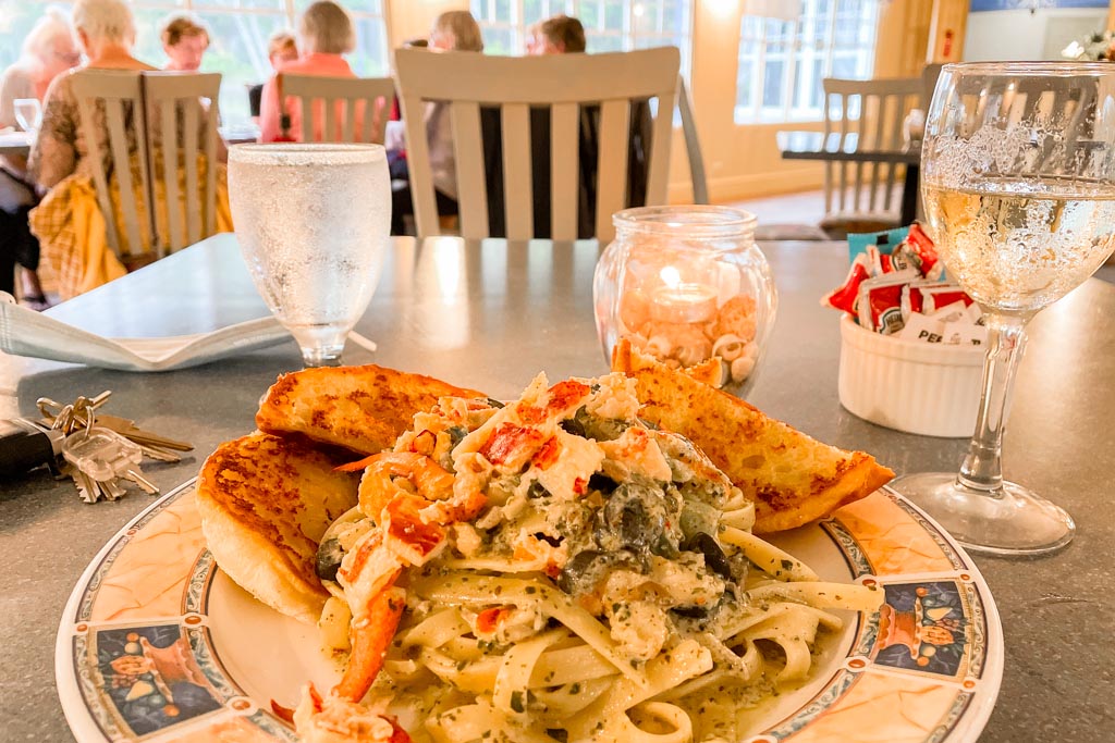 Patrons rave about the excellent seafood offerings, including a standout seafood chowder and seafood pasta with a homemade sun-dried tomato sauce, both generously packed with fresh, tender seafood. Many guests also appreciate the accommodating staff, who go out of their way to ensure everyone’s needs are met, from children’s meals to special requests. While the main dining room can sometimes get busy, the Thirsty Hiker Pub downstairs offers an alternative space, complete with live music that adds to the lively, relaxed vibe. Guests often praise the pub’s offerings, such as flavorful burgers with perfectly seasoned meat, as well as expertly grilled fish like halibut, which is often described as one of the best in the region.